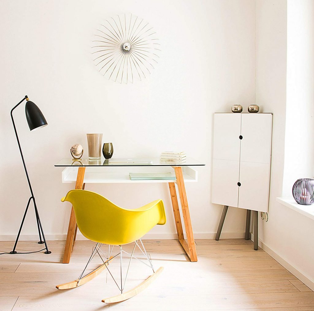 If you’re looking for a beautiful contemporary home office desk, then this bonVIVO writing table would be a great option. This is a good smaller desk for anyone who doesn’t have a large place to add a table, with dimensions of 44″ length x 30″ width x 22″ depth, just enough for a laptop or a smaller computer screen.